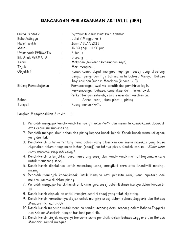 Rancangan Pelaksanaan Aktiviti Pdf